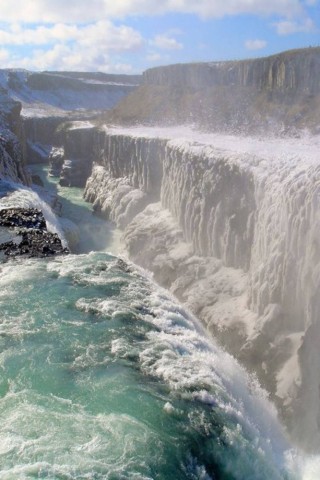 深く割れ込んだ大地に流れる滝(アイスランド・グトルフォス)