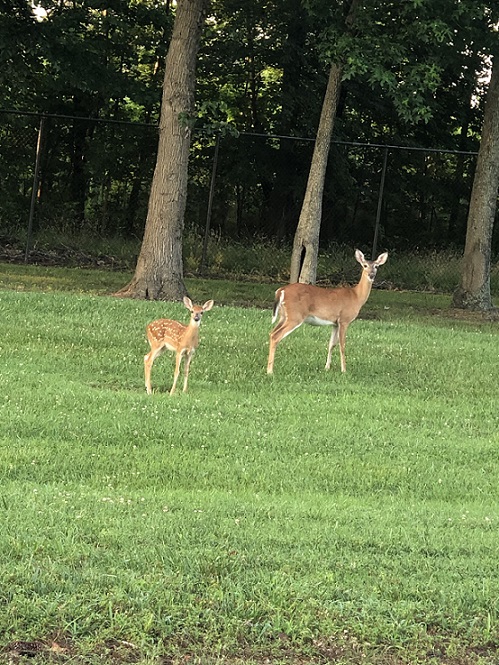 並んでこちらを向いて(シカの親子)