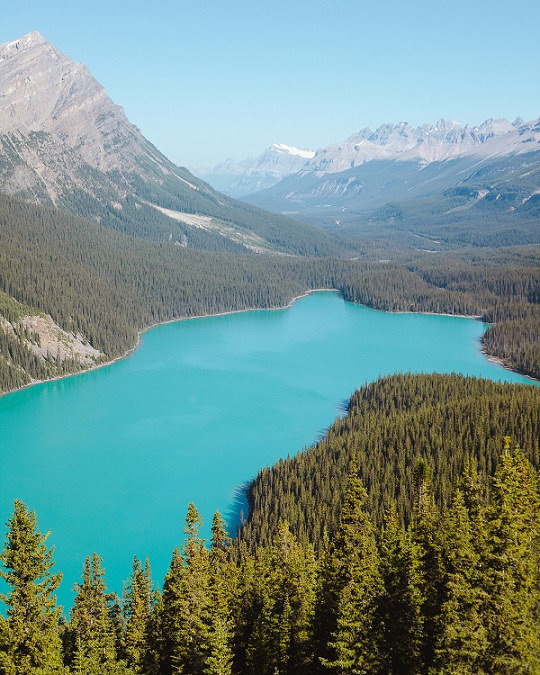 山間に佇むターコイズブルーの湖(カナダ・バンフ国立公園)