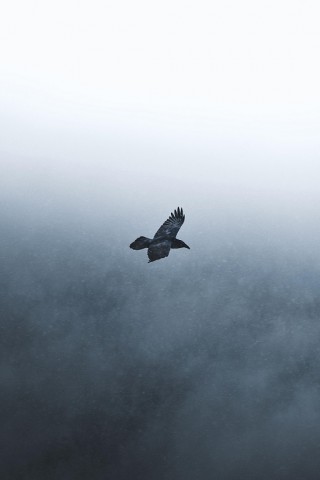モノクロの霧の空を舞う一羽