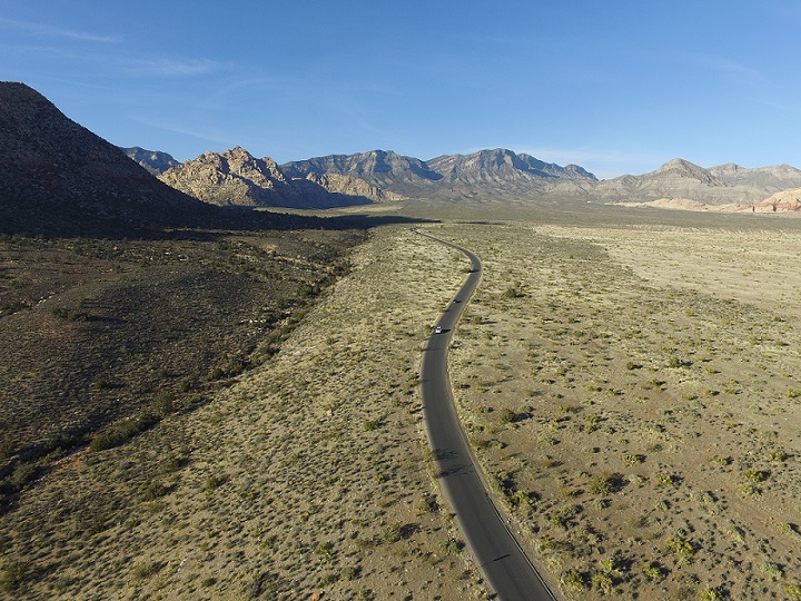 荒漠とした大地に続く一本の道(米・レッドロックキャニオン)