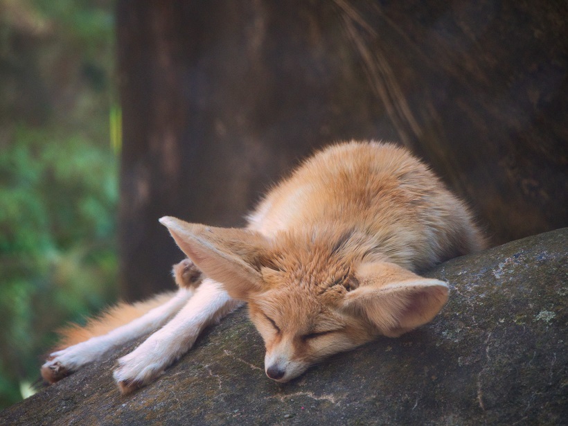 岩の上でぐっすりお昼寝(フェネックギツネ)