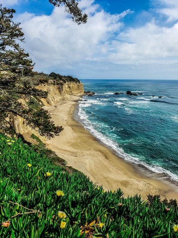 崖の下の小さな浜辺(米・グレイハウンドロック州立海洋保護区)