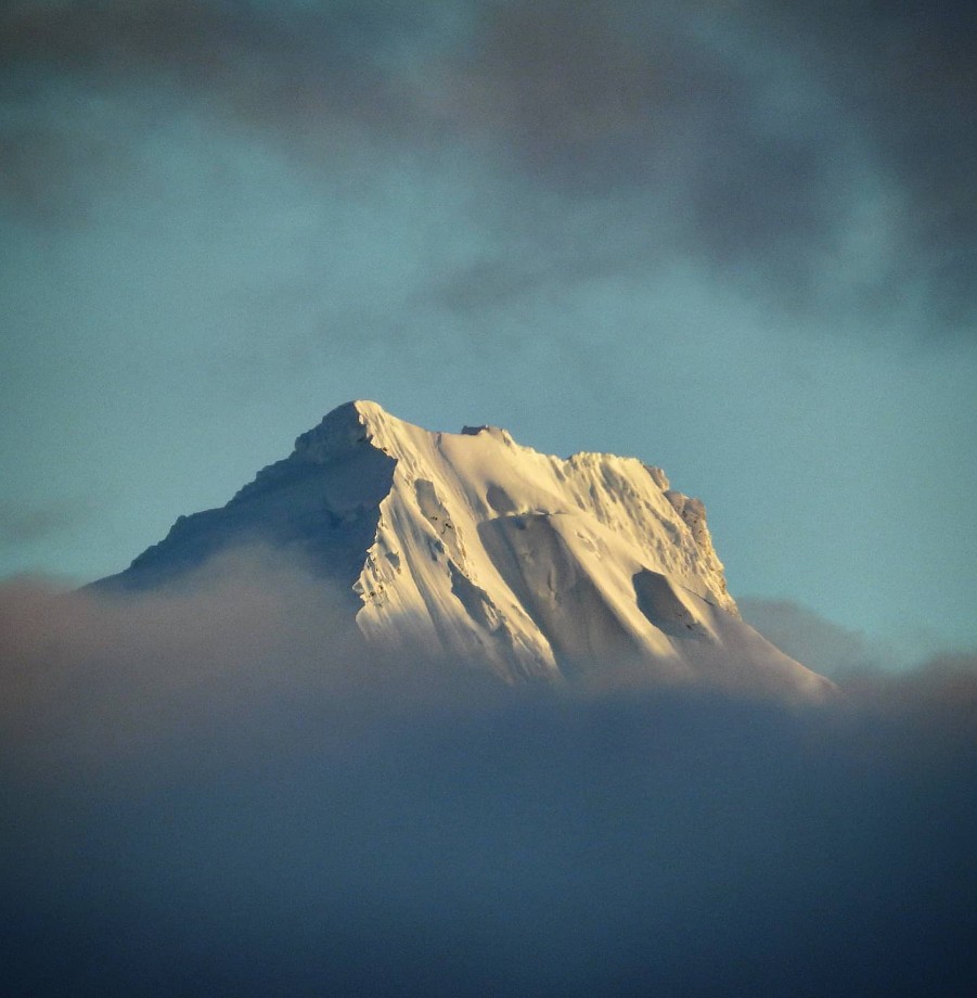雲の向こうにそびえる雪山(アラスカ)
