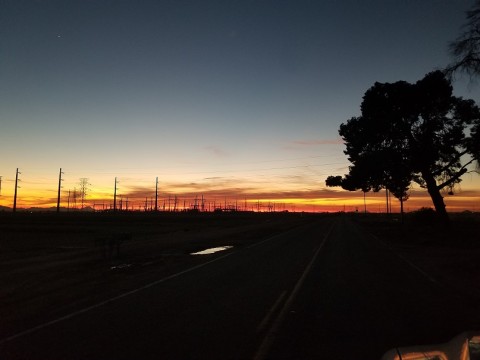 オレンジ色に染まる地平線(米・アリゾナ州)
