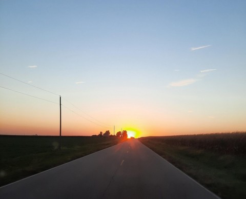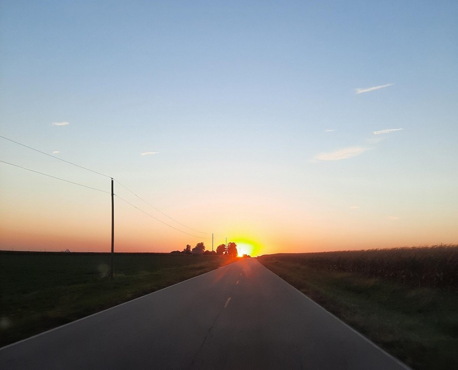 道の先を照らす夕日