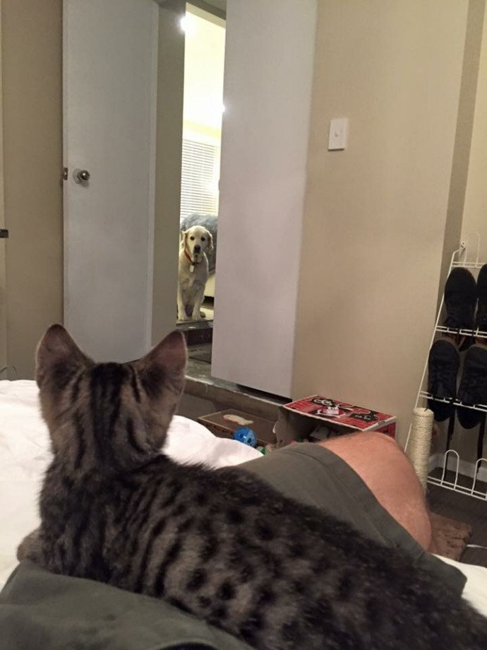 新入りの子猫と先輩の犬
