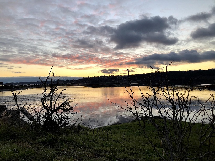 冬の水辺を包む穏やかな夕暮れ(カナダ・ビクトリア)