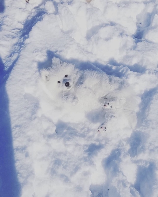 雪景色に溶け込むワン