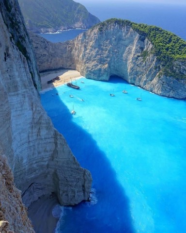 岩壁に囲まれた美しい浜辺(ギリシャ・ザキントス島、ナヴァイオ海岸)