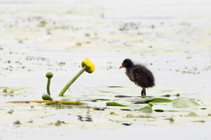 水上に咲く花と挨拶を(バンのひな、英・キャッスル・ダグラス)