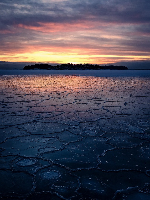 夕空をほのかに映す氷の海(フィンランド・ヘルシンキ)