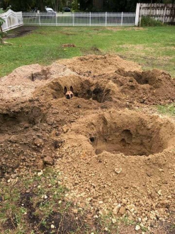 裏庭の穴からぴょんと立つ耳(マリノア犬)