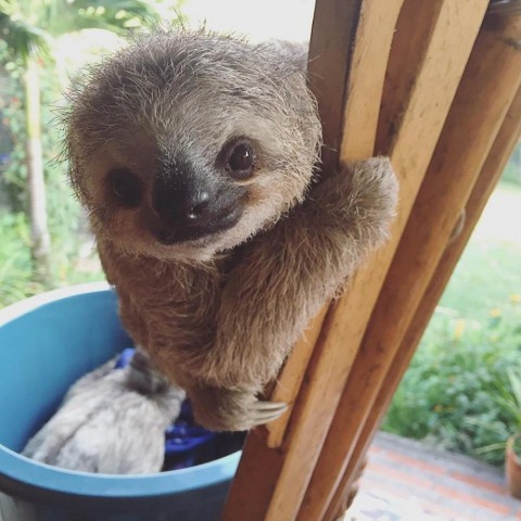 ナマケモノの赤ちゃん、好奇心いっぱい