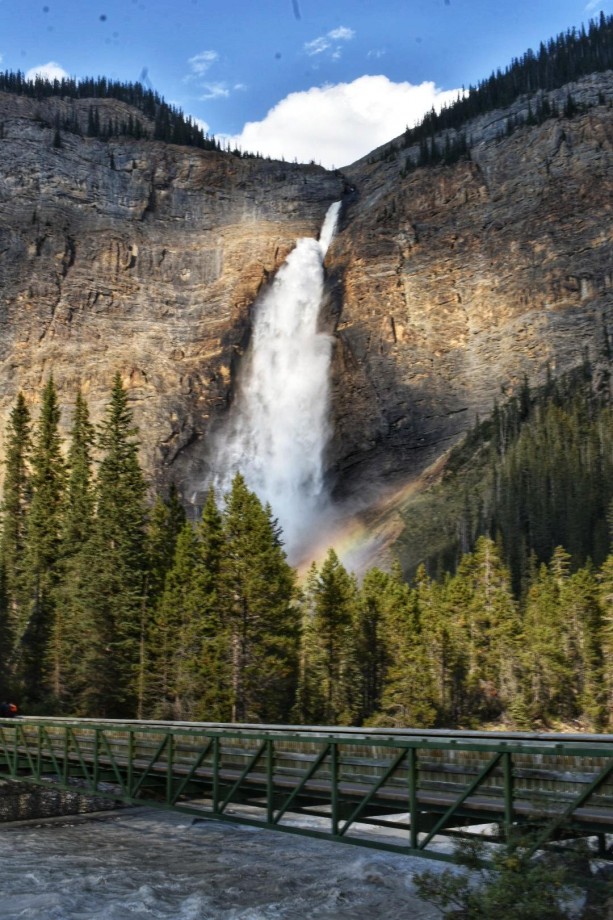 断崖から流れ落ちる瀑布(タカカウ滝、カナダ・ヨーホー国立公園)