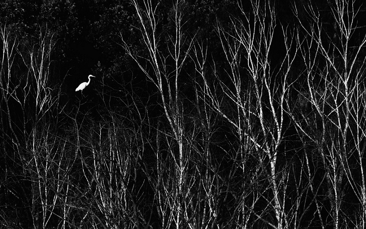 静かな森に浮かぶ1羽の影(ダイサギ、プラハ)