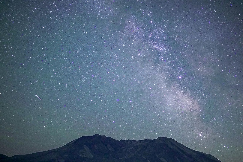 山の上に輝く満点の星(米・セント・ヘレンズ山)
