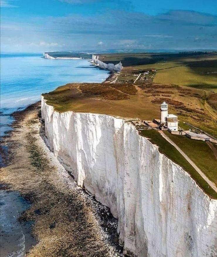 海岸線に遠く続く白亜の壁(イギリス、ドーバーの白い崖)