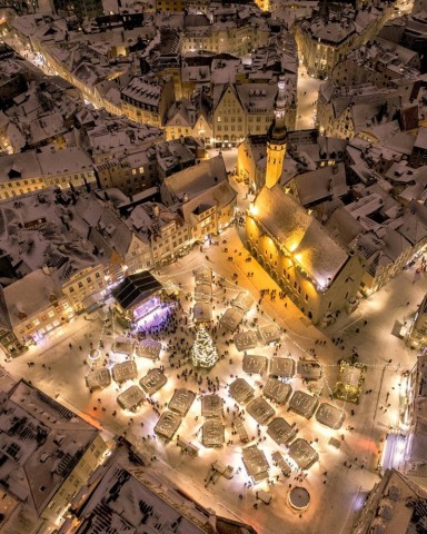 旧市街の広場を彩るクリスマスマーケット(エストニア・タリン)