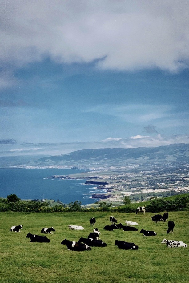 海を望む丘でゆったりと(牛、ポルトガル領アゾレス諸島)