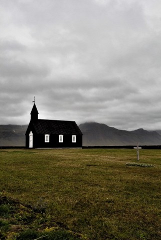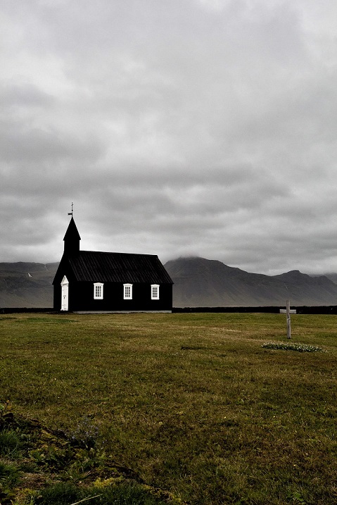 雄大な景色に立つ黒の教会(アイスランド・ブージル)