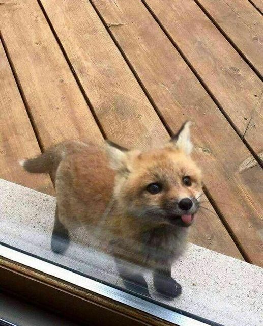 庭先にやって来た小さな子ぎつね