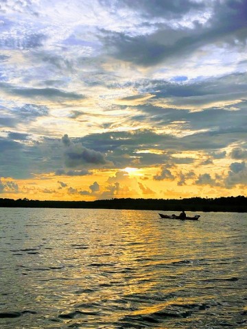 夕暮れの海にカヤックを浮かべて(米・フロリダ州、ガルフコースト)
