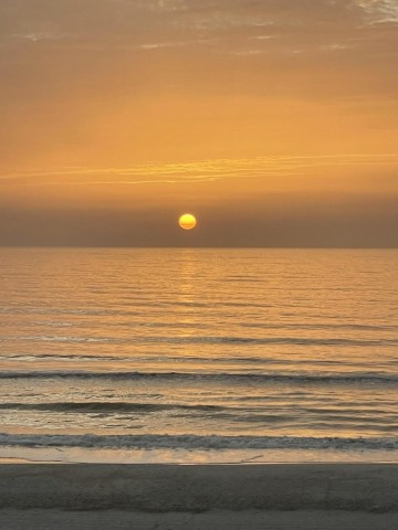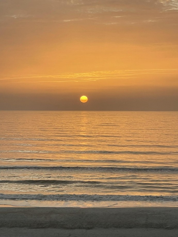 夜明けの海に浮かぶ小さな太陽(米・フロリダ州)
