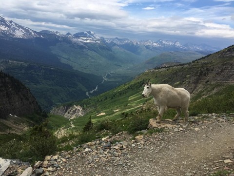 緑の谷を見下ろす山の上で(米・グレイシャー国立公園)