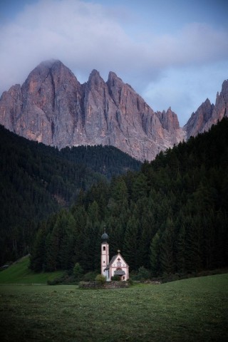 山のふもとに立つ小さな教会(イタリア・フーネス、Chiesetta di San Giovanni)