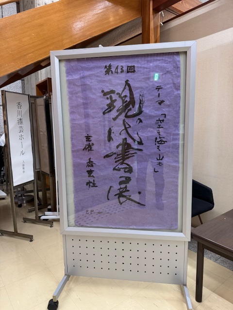 今日は金曜日で、10時に散髪に行ってそれから文化会館で始まった「現代書展」の観賞に行った。毎回会場に書の作品に格調の高い生花を配し観るものを書と花で癒してくれる。調和体(漢字かな交じり書)の部門での作品展は香川では珍しい部類になる。心に残る言葉やら今活躍されている人の歌を書で表現していて読みやすいのが何よりこのジャンルのいいところだろう~