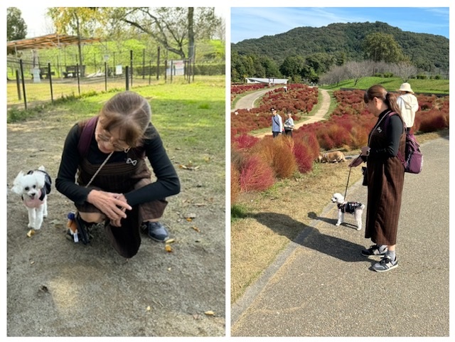 今日は金曜日で、アヴィーちゃんを連れてお弁当を持ってまんのう公園のコキアを見に行った。やや終わりかけの状態だが、お天気が良くそれなりに来園者がいた。こちらにはドッグランのスペースがあって、大型犬と小型犬を区別してくれているので安心だ。初めてのドッグランで楽しそうに走り回っていた。このスペース内ではリードを外せるので有難い。1時間ほどいてお弁当を食べて園を後にした。帰りにラムー高松中央店に寄って夕食(輸入肉のステーキ)の食材を買った。肉のアテにシイタケのバター炒め、蒸した丸太のジャガイモ、レンコンを添えた。お風呂の掃除をして夕食の後、夜の教室だ。