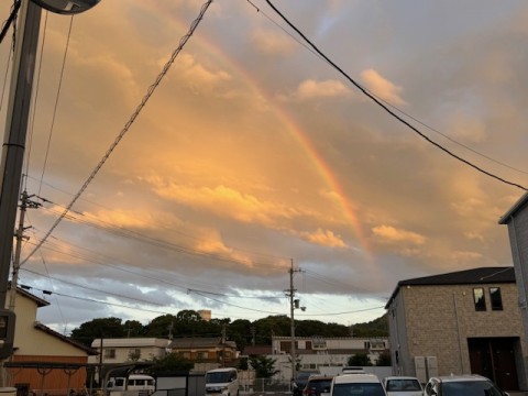 今日は月曜日で可燃ごみを捨てて、庭の手入れをした。朝から今日は蒸し暑かった。10時ごろ屋島の異人館に行って珈琲とマフィンを注文した。ここは内装に拡張があり人も少ないので落ち着ける。特に珈琲が私の好みで美味しい。それから筆屋さんが来るので急いで帰った。筆屋さんも注文が減って大変そうだった。お昼はイオンモール高松東店に行って盛り中華を食べたがあっさりしていて美味しかった。ここで夕食(茄子と豚肉の炒め物)の食材を買って帰った。帰りに八栗のヤマウチ石油で久しぶりに洗車をしたがトラブル… サイドミラーがモップに引っかかってカバーが吹っ飛んだ。( ゚Д゚) 店の人が急いでやってきて、屋島のラチェットモンキーで壊れたサイドミラーの修理をしてくれるという。やれやれ~ トヨタタンクタイプのサイドミラーは他の車に比べて少し大きめでたまにこういうことが起こるらしい~ 夕食の後アヴィーちゃんを散歩させていて空に虹が出ていることに気付いた。