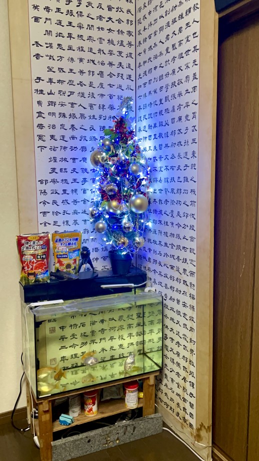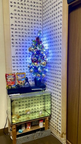 写真は12月に入ったので恒例のクリスマスツリーを出して点灯した。