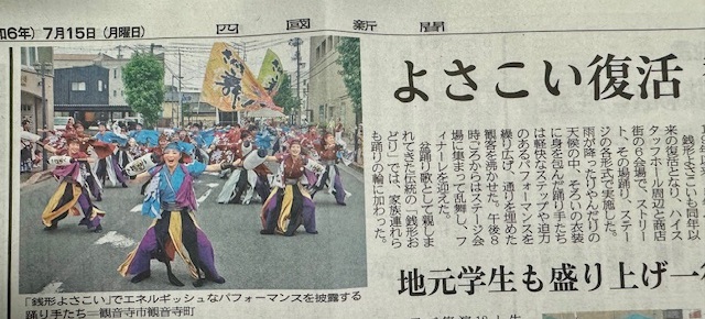 写真は観音寺銭形まつりに参加した「さぬき舞人」のよさこい連。香川ではナンバーワンのチームとしてあちらこちらに参加しているようだ。