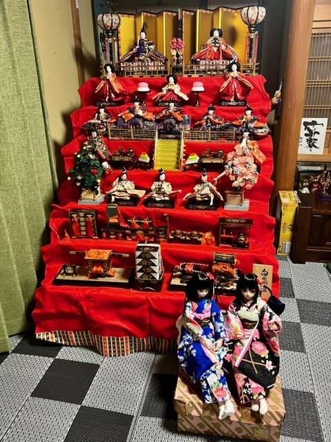 2時間ほど公園でのんびりして、帰ってきた。それからエディオンに行って単純なトースターを買ってハローズで夕食の食材を買った。今宵は「ペッパーランチ」風の料理にした。夕食前に、片付けてあった雛飾りを押し入れから出して奥が飾り付けた。もう47年にもなるというのに、いい仕事しているので当時と遜色ないのが有難い。