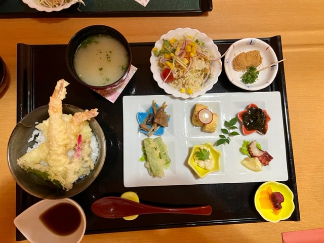 今日は火曜日で、9時半からの教室をしてお昼は婆さんの入所している「ポタラの森」へ市役所から届いたがん検診の申込書と参議院選挙の用紙を届けた。それから、近くにあり前から行ってみたかった「いせや」に昼食を食べに行った。写真のように品々あって美味しかった。