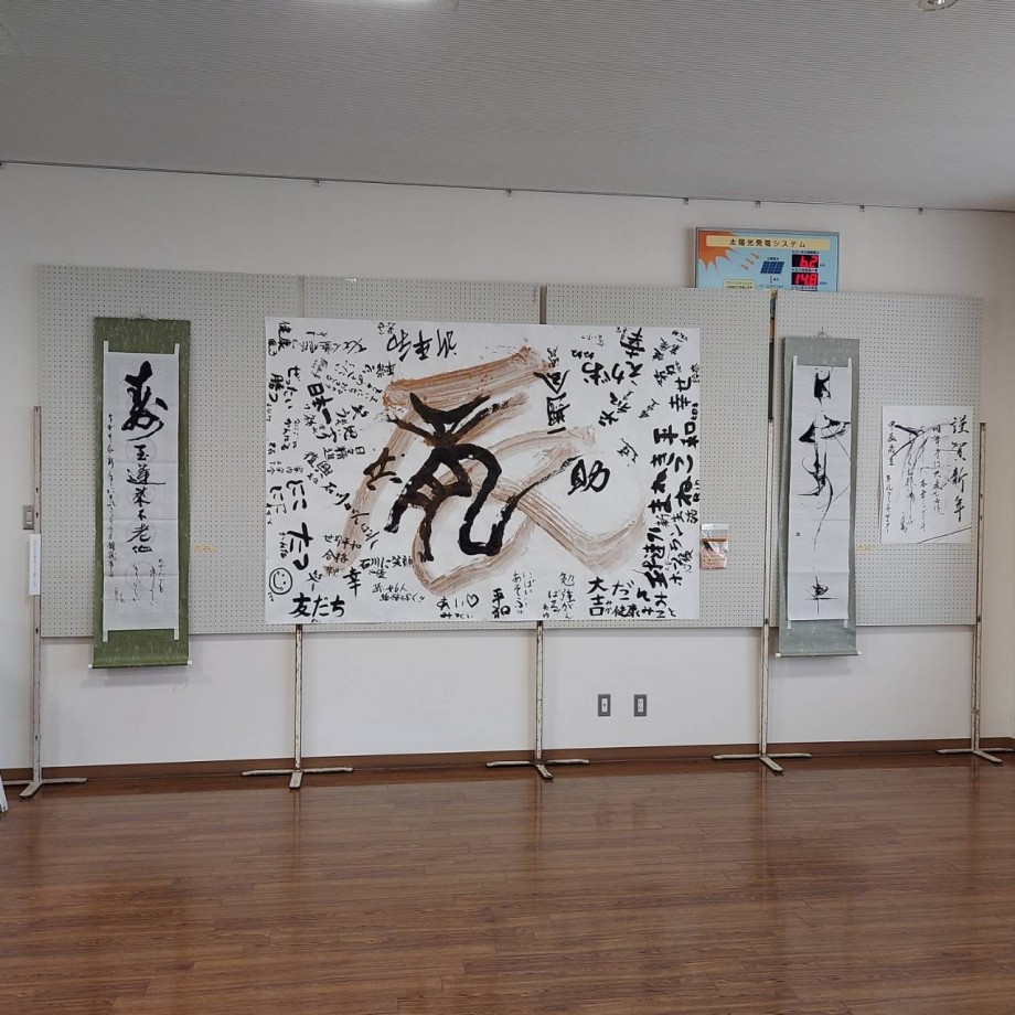 昨日の書初め大会みんなで書いた寄せ書き