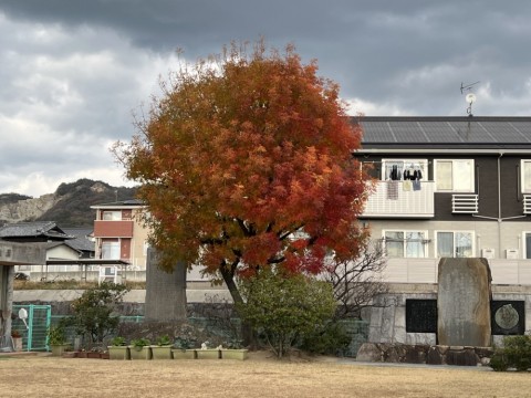 写真の「楷」の木は中国の孔子廟にあることから、学問の木とされていて、ここの「楷」の木は岡山の閑谷学校の「楷」の木を若木を分けてもらって植えたと聞いています。「楷書」の「楷」の字を充てたのは学問というだけに基本、とか整っている…とか正しい姿という意味合いも含んでいるんだそうな・・・