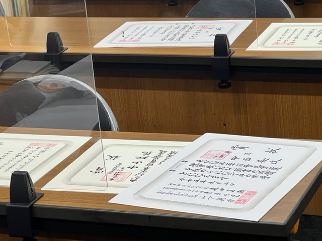 写真は毎日書道学会から届けられた硬筆展の賞状。
