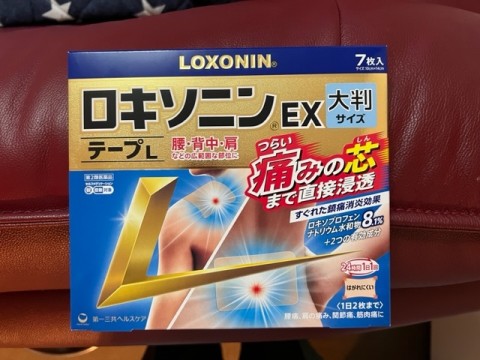 先週のバレーボールの練習中に痛めたふくらはぎ。とりあえず薬局で教えてもらって、写真のロキソニンを毎晩張り替えていますわ。