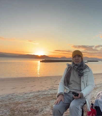 今日は水曜日で、元日。朝6時に起床してホームページを更新して7時前に恒例の庵治の高尻海岸に奥とアヴィーちゃんを連れて出掛けた。すでに30人くらいは海岸に出ていた。7時10分ごろに日の出とあったが、実際には7時20分くらいで日が昇った。初日の出だ。この瞬間はいつものことながら感動する。日の出を堪能して一旦家に帰って朝食を食べて八栗山に向かって出発。車を八栗ゴルフの練習場に出来た臨時の駐車場に駐車して、ケーブルには乗らずに歩いて参道を歩いた。最近はワンちゃん連れが結構増えた感がある。すごくいい天気で到着したころには暑くて上着を脱いだ。八栗寺本堂前に出来る行列もこの時間はそう混んでは無かった。本殿に参って聖天さんにも参って帰りのお店でいつもの甘酒を飲んだ。帰りに地元の氏神さんにお参りして金毘羅さんに参ろうと向かったが、八栗寺に行った際の筋肉痛があったので次回に延期して、東山崎のジョイフルでお昼を食べて帰ってきた。