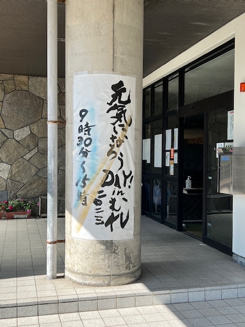 写真は先日の日曜日に開催された「元気になろうDAY in むれ」の表看板。前夜の準備の際にチャチャっと書いたもの。