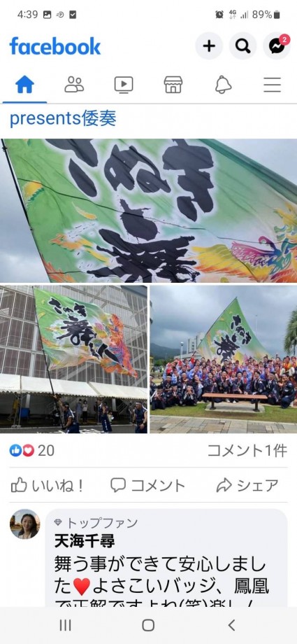 写真は先日、「さぬき舞人」から依頼を受けて書いた大旗を実際に使用したとの報告がフェイスブックでなされたようだ。