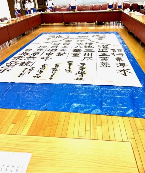 お昼は家で食べて、1時からの恒例の中学生のふるさと学習の指導に栗山記念館に行った。中学一年生が丁度20名来ていたので栗山の詩(詠富士山)五言律詩を2文字ずつ書いてもらって完成させた。思い思いに書くのがまた面白い。この作品を12月1日の栗山祭の際に展示することになる。4時からの児童の毛筆の清書をして夕食の後夜の教室だ。