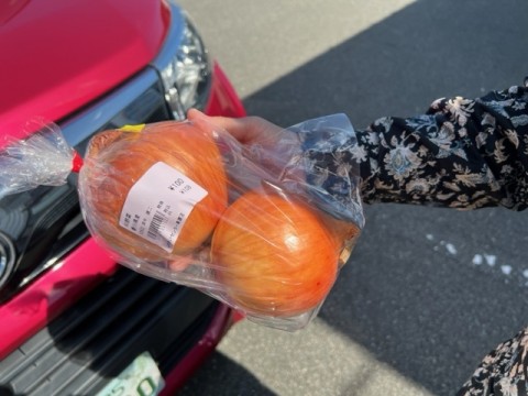 今日は日曜日でOFF日。アンデルセンでモーニングをして徳島へ行った。途中大川農協で産直をやっていたので寄ってみた。時間がやや産直に寄るには遅かったのか、品薄を感じたが写真の玉ねぎがお店には出ない規格外のサイズでなんと100円。これで今宵はカレーを…