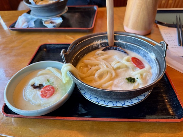 今日は土曜日で、娘が京都に行くというのでJR高松駅まで6時40分ごろに送って行った。その後、8時からの教室をしてそれからアヴィーちゃんを連れて屋島山上に行った。いい天気で初めて屋嶋の城に行ってみた。山肌に築かれた城壁(石垣)は当時としては大変な作業だったと感心した。しばらく散歩をしてお昼は写真のあん餅うどんを食べた。帰りに牟礼のコープで夕食(餃子)の食材を買って帰った。2時からの教室をして3時半ごろに屋島のマクドでお茶をした。