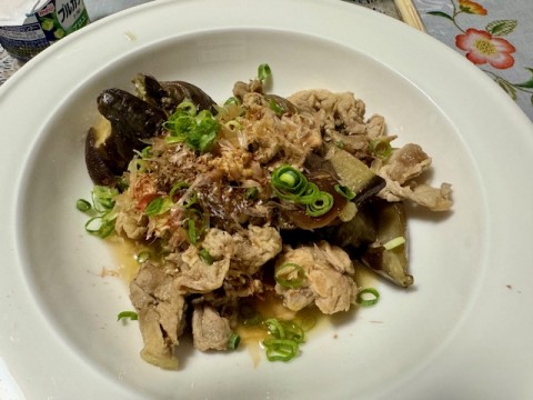 今宵は「さっぱりおかかポン酢でナスの焼き浸し」とやらを