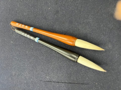 写真は永和書道教室で小学生用にと広島の筆屋さんで特別に作ってもらってる筆ですが、物価高騰の折、筆軸を黒から茶色に変更となりました。
