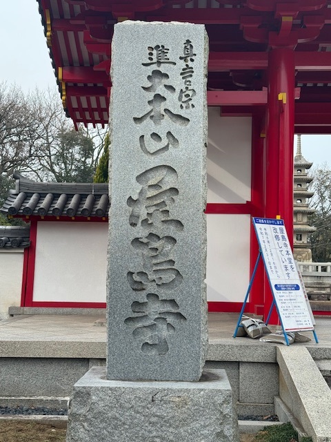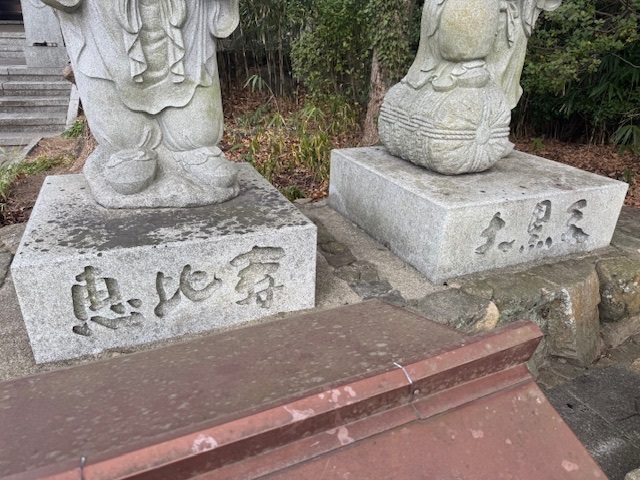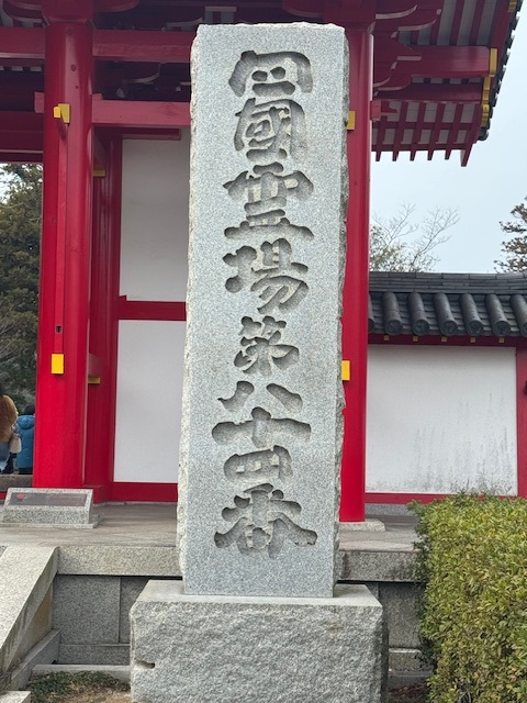 今日は土曜日で、8時から児童の毛筆の清書をして、10時頃アヴィーちゃんを連れて屋島山上に行った。お寺の山門側にまずは立派な書が目に入る。そのまま進むとおそらく安部杏邨先生の書による綺麗な楷書で大師堂等々書かれたのがあって、なお奥に進むと七福神の名前を同じ人の書であろう顔眞卿風に書かれてあった。なお進んでお店が始まる手前あたりの門柱に目が向く。残念ながら書いた人の名前は書かれていない… ぜひご覧になってください。生は迫力があります。